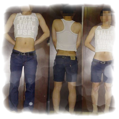 本当は、ジーパンはもっと上に上がるのですが、わざとずり下ろしてみました